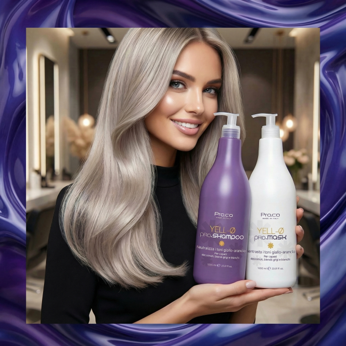 Masca profesionala YELL-O PRO cu efect antigalben a fost creat special pentru părul blond și decolorat. Amestec ideal, cu o acțiune delicată de protecție, pentru a neutraliza îngălbenirea pe părul blond, decolorat, alb și gri.
